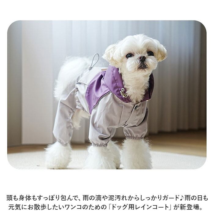 ・頭も身体もすっぽり包んで、雨の滴や泥汚れからしっかりガード♪雨の日も元気にお散歩したいワンコのための「ドッグ用レインコート」が新登場。