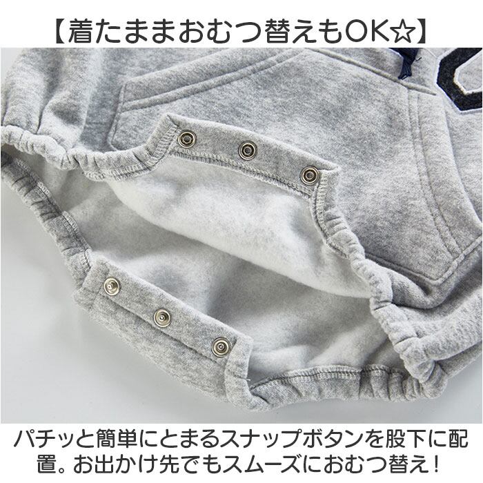 ・パチッと簡単にとまるスナップボタンを股下に配置。お出かけ先でもスムーズにおむつ替え!
