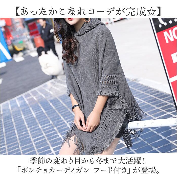 ・季節の変わり目から冬まで大活躍!「ポンチョカーディガン フード付き」が登場。