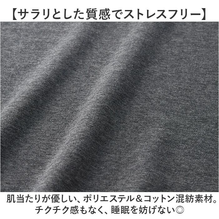 ・肌当たりが優しい、ポリエステル&コットン混紡素材。チクチク感もなく、睡眠を妨げない◎