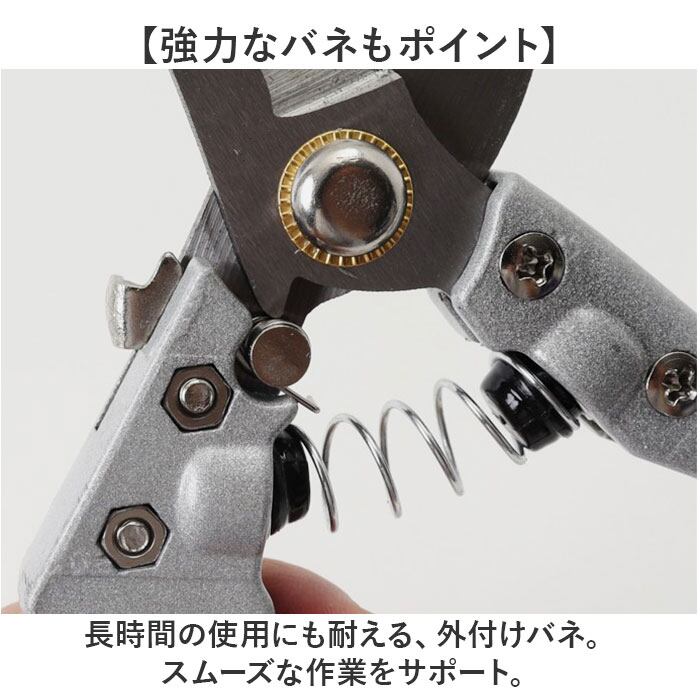 ・長時間の使用にも耐える、外付けバネ。スムーズな作業をサポート。