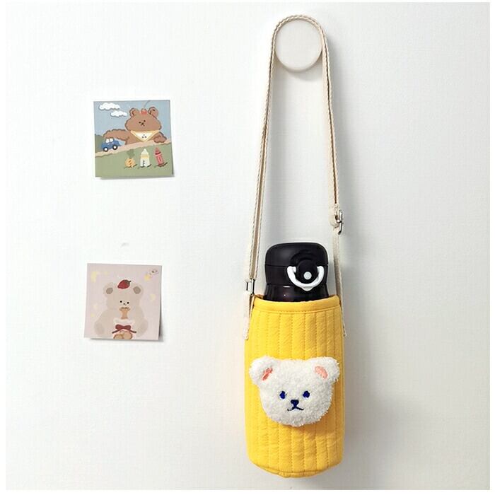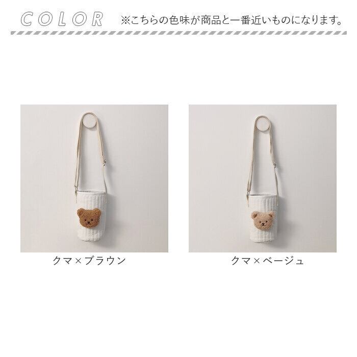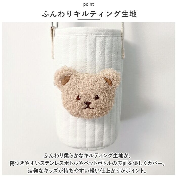 ・ふんわり柔らかなキルティング生地が、傷つきやすいステンレスボトルやペットボトルの表面を優しくカバー。活発なキッズが持ちやすい軽い仕上がりがポイント。