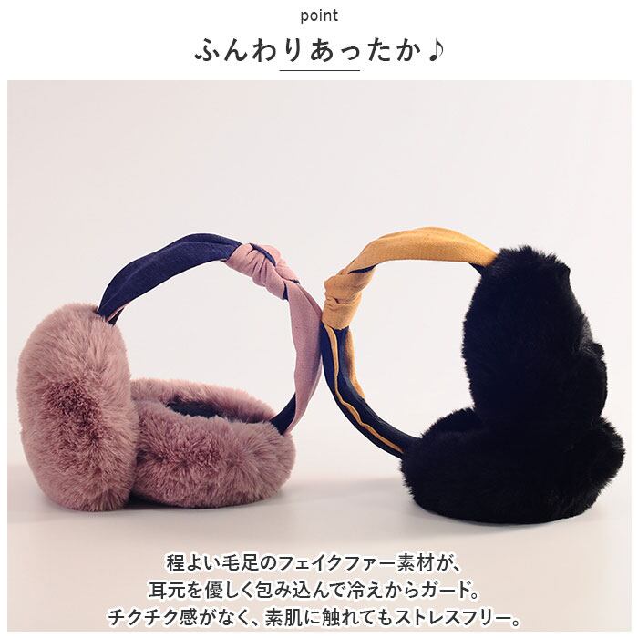 ・程よい毛足のフェイクファー素材が、耳元を優しく包み込んで冷えからガード。チクチク感がなく、素肌に触れてもストレスフリー。