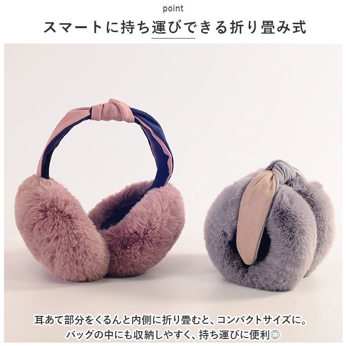 ・耳あて部分をくるんと内側に折り畳むと、コンパクトサイズに。バッグの中にも収納しやすく、持ち運びに便利◎