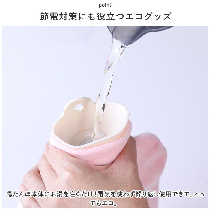・湯たんぽ本体にお湯を注ぐだけ!電気を使わず繰り返し使用できて、とってもエコ。