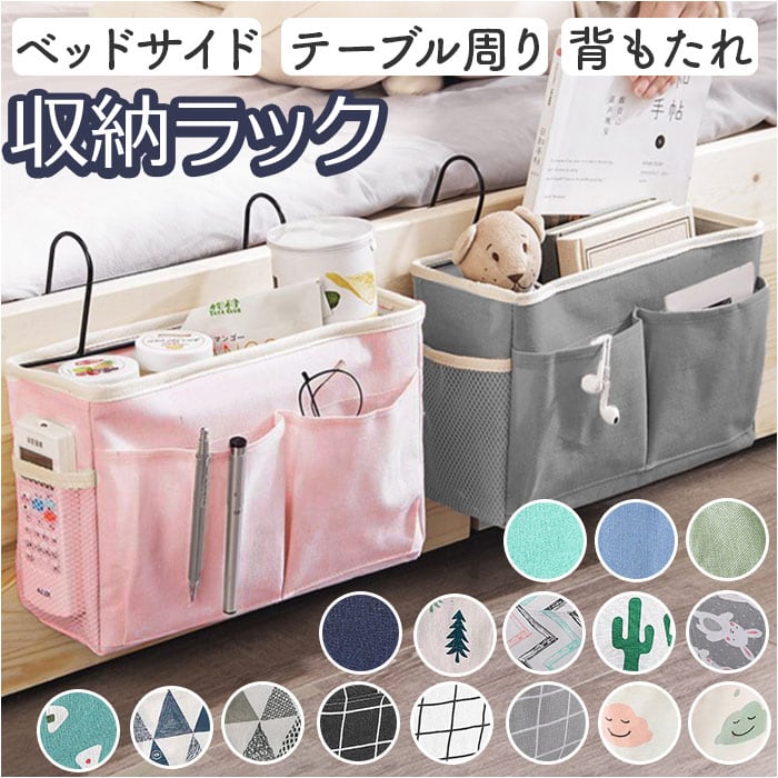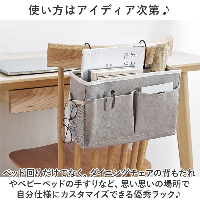 ・枕元やテーブル周りの小物をすっきりひとまとめに!吊り下げるだけで設置が簡単「ベッドサイド収納ラック」が新登場。