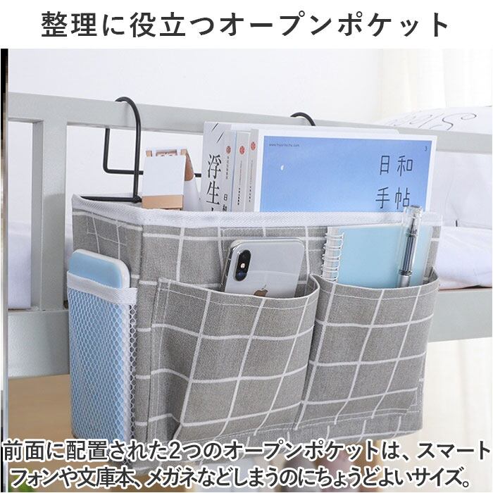 ・メインポケットには、雑誌や手帳、お子さまのぬいぐるみまで、様々な小物をたっぷりと収納可能。ベッドサイドに収納キャビネットがなくても収納上手になれる♪