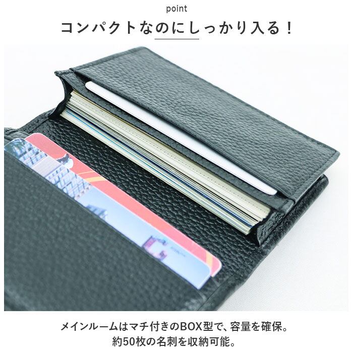 ・メインルームはマチ付きのBOX型で、容量を確保。約50枚の名刺を収納可能。
