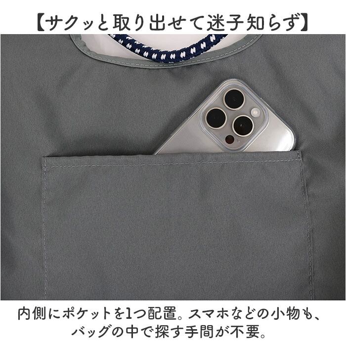 ・内側にポケットを1つ配置。スマホなどの小物も、バッグの中で探す手間が不要。