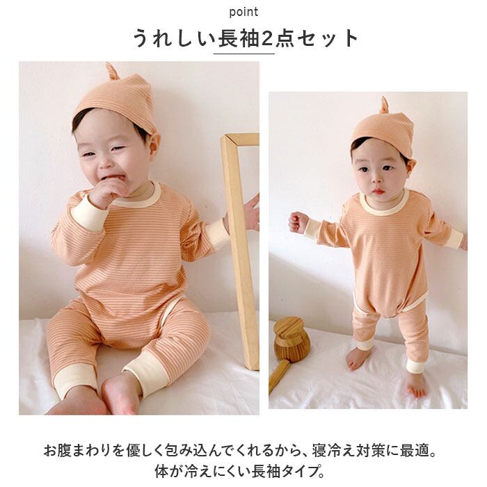 ベビー ロンパース 2点セット 帽子付き 長袖 ysjybc5249