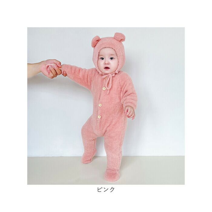 ・ロンパースとセット使いできて、可愛らしさ満点☆くまちゃんの耳がアクセント。
