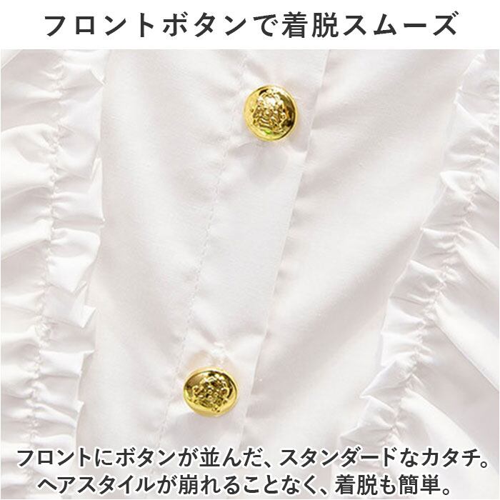 ・フロントにボタンが並んだ、スタンダードなカタチ。ヘアスタイルが崩れることなく、着脱も簡単。
