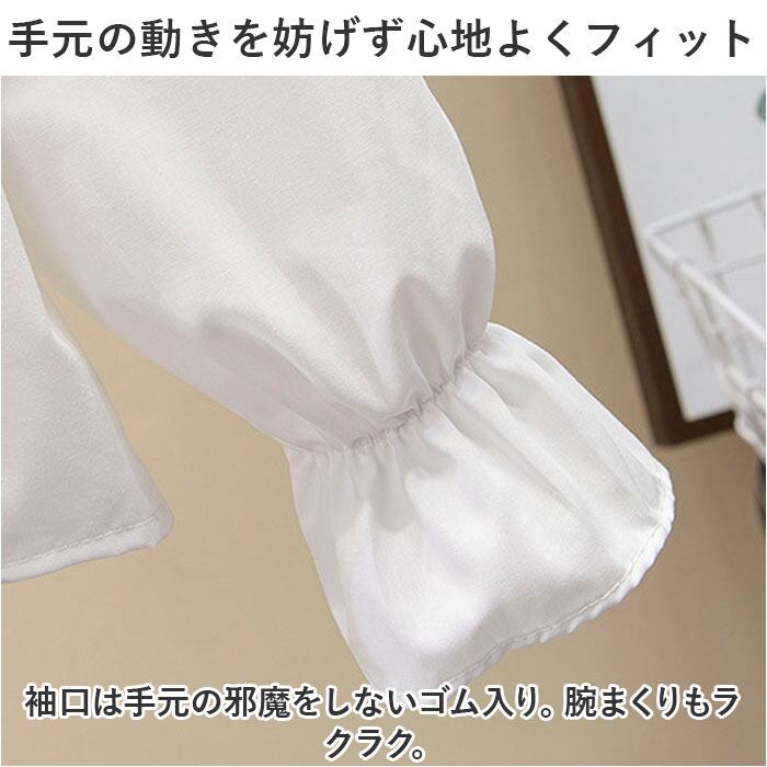・袖口は手元の邪魔をしないゴム入り。腕まくりもラクラク。