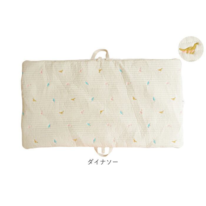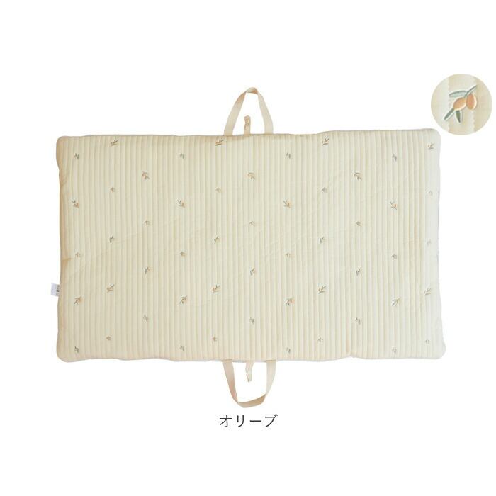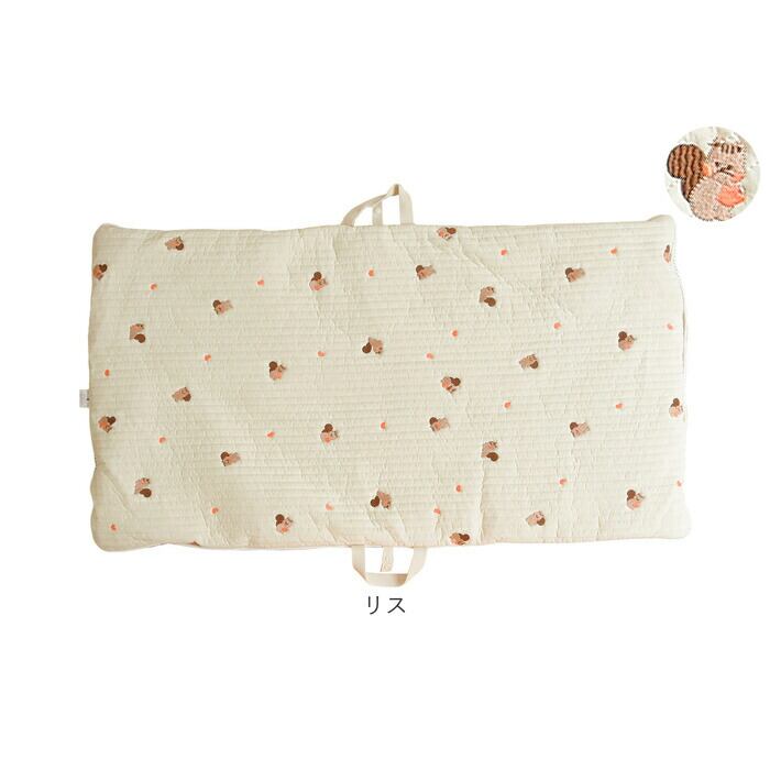 ・ふんわり柔らかなキルティング素材に、アニマルフェイスやボタニカル柄の可愛い刺繍がアクセント!おむつ替えやお昼寝用にぴったりのクッションマット。