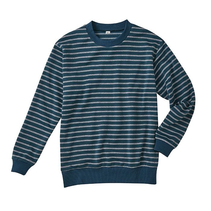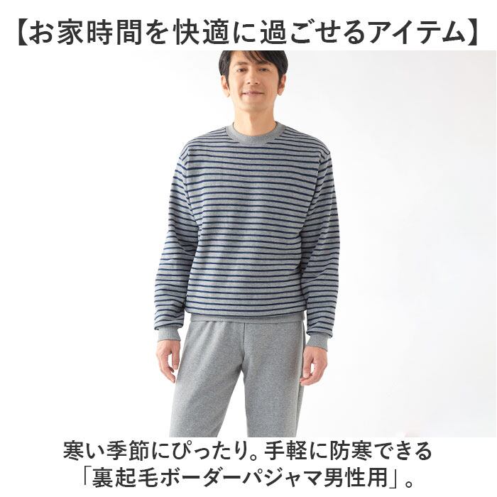 ・寒い季節にぴったり。手軽に防寒できる「裏起毛ボーダーパジャマ男性用」。
