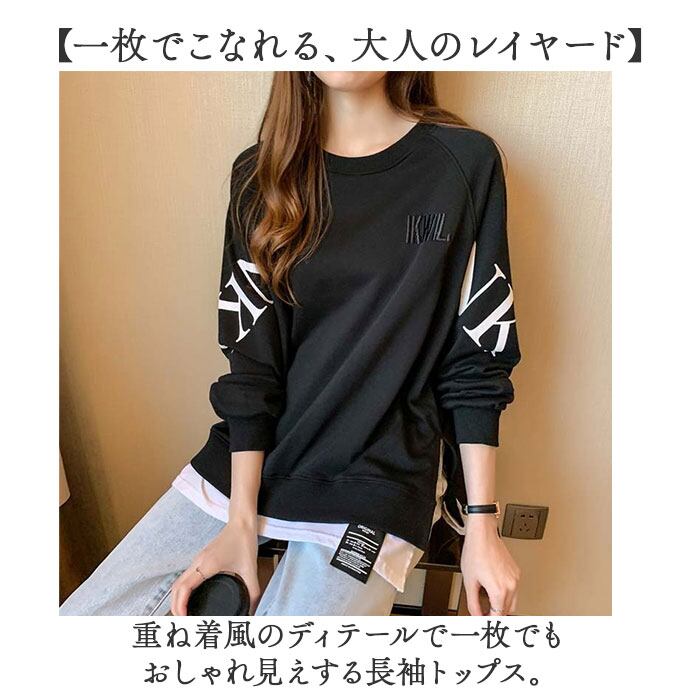 ・重ね着風のディテールで一枚でもおしゃれ見えする長袖トップス。