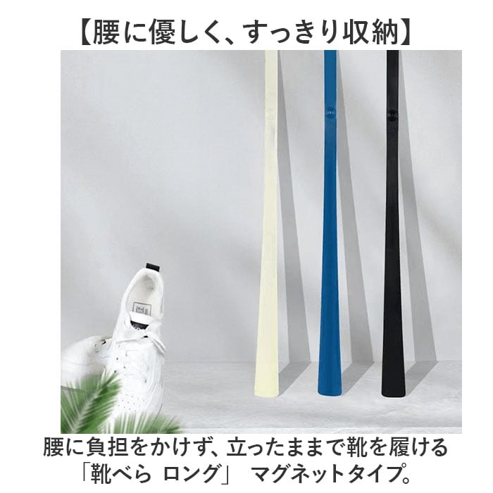 ・腰に負担をかけず、立ったままで靴を履ける「靴べら ロング」 マグネットタイプ。