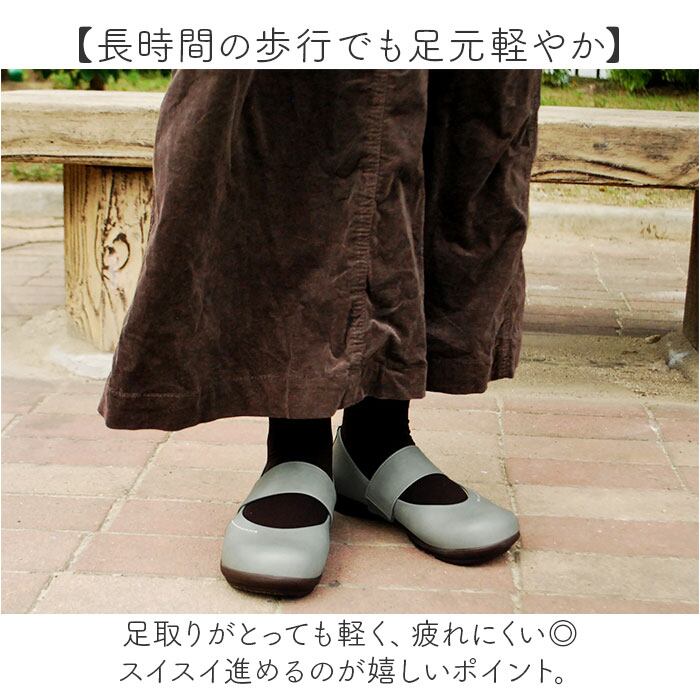 ・軽量のローヒール。サッと履けて、普段使いにも長距離のお出かけにもぴったり。