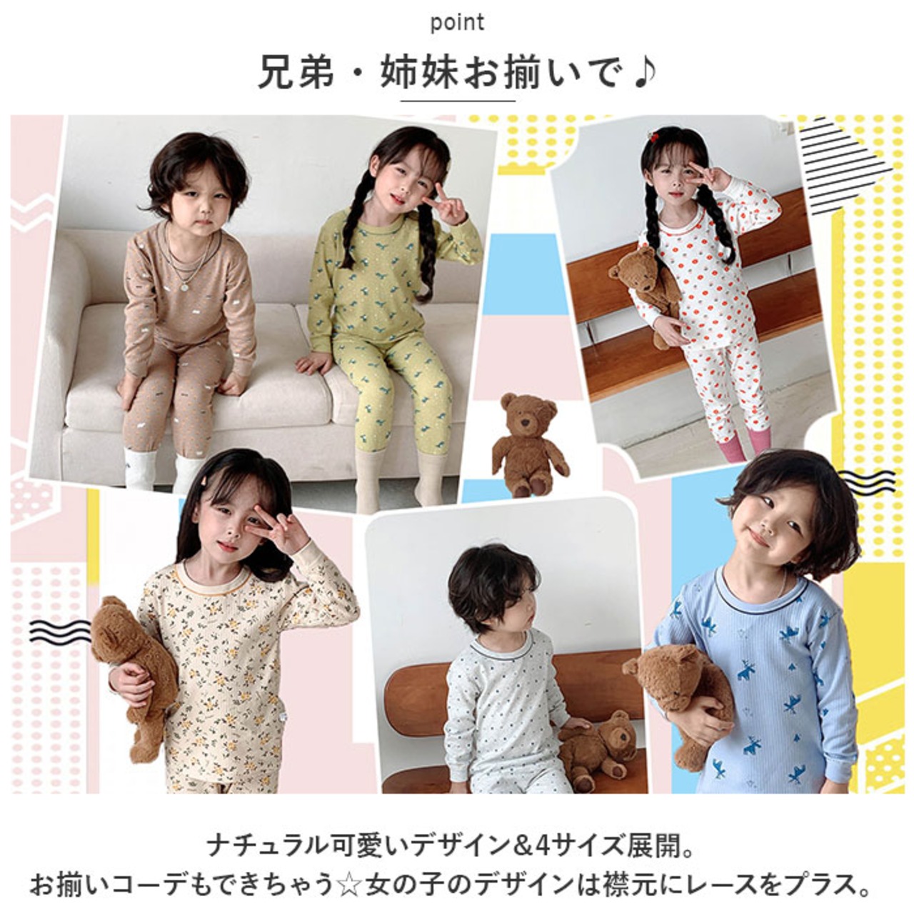 ・ナチュラル可愛いデザイン&4サイズ展開。お揃いコーデもできちゃう☆女の子のデザインは襟元にレースをプラス。
