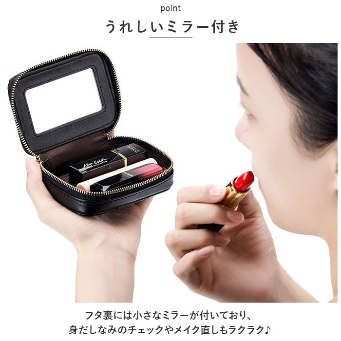 ・フタ裏には小さなミラーが付いており、身だしなみのチェックやメイク直しもラクラク♪