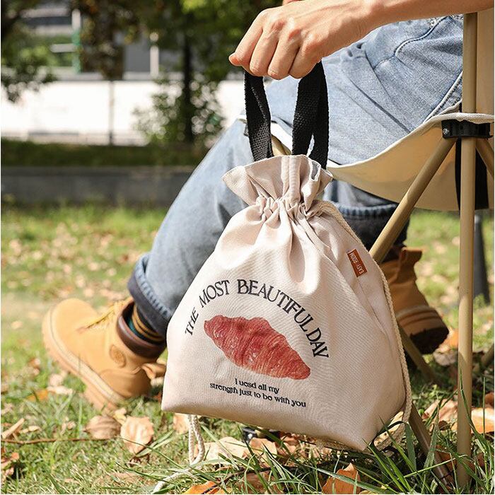 ・バッグの開口部は保冷剤の冷気を逃がさないキュッと絞れる巾着タイプ。