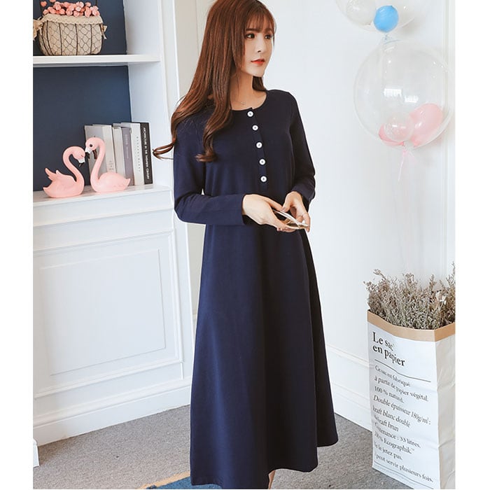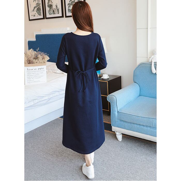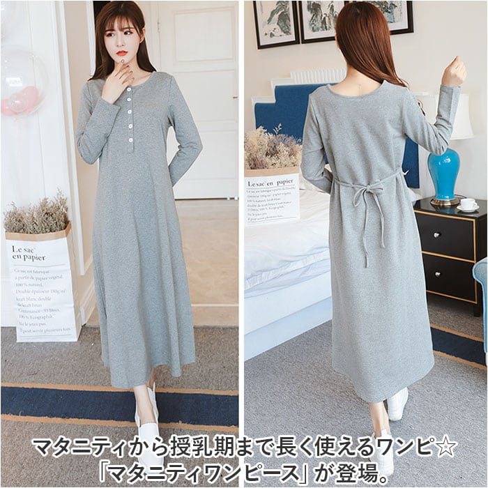 マタニティ ワンピース ロング 通販 マタニティウェア 授乳服 妊婦服 ウエア 長袖 ワンピ 前ボタン 前開き ウエストリボン 綿 コットン シンプル 無地 通勤 オフィス フォーマル 産前 産後 ルームウェア 部屋着 春 秋 冬 おしゃれ かわいい