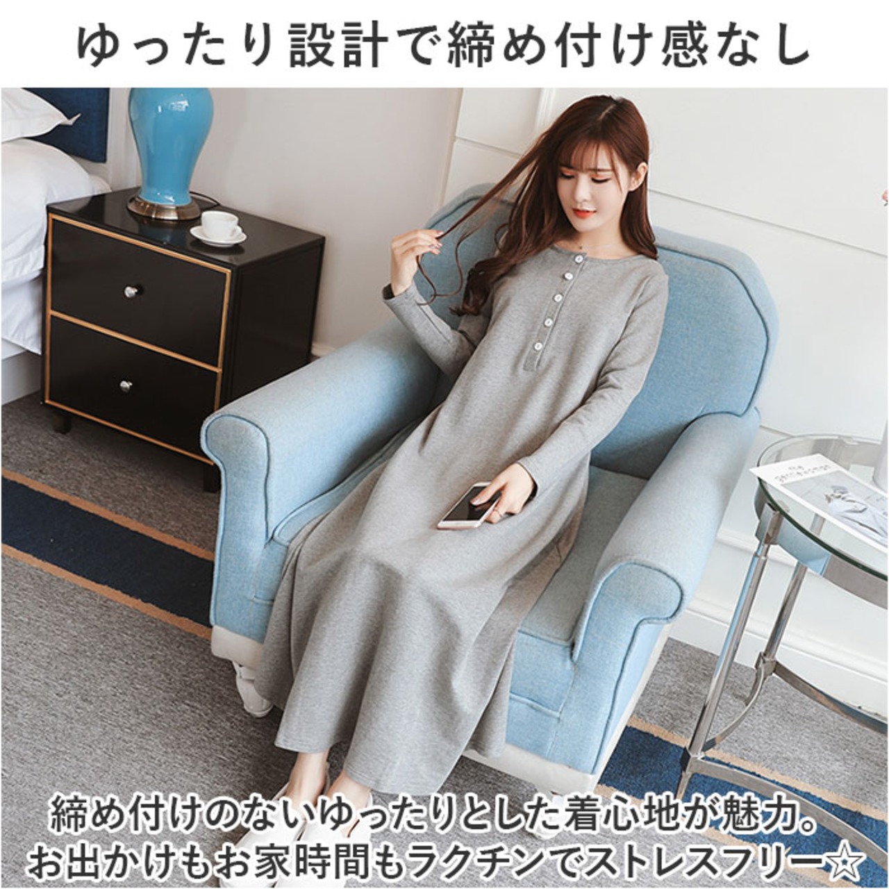 ・締め付けのないゆったりとした着心地が魅力。お出かけもお家時間もラクチンでストレスフリー☆