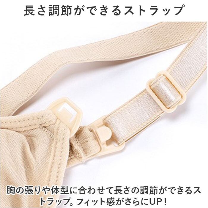 ・胸の張りや体型に合わせて長さの調節ができるストラップ。フィット感がさらにUP!