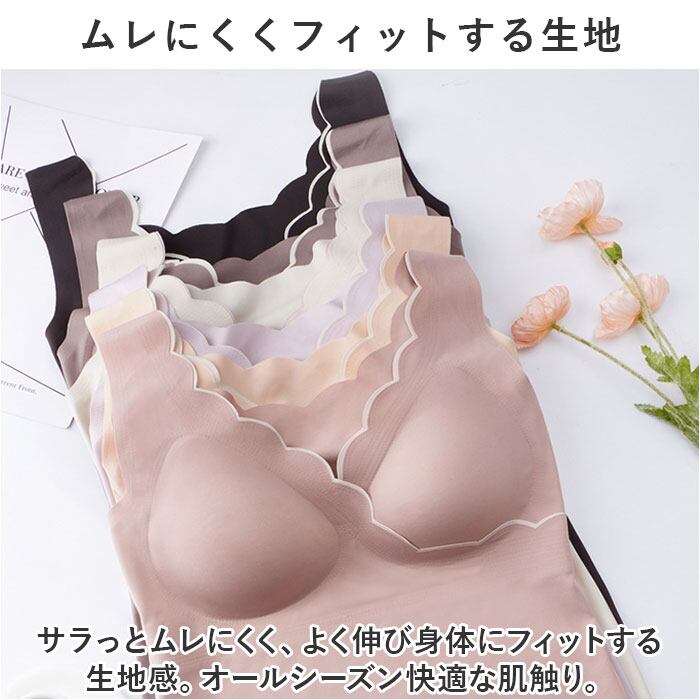 ・インナーはこれ1枚でOKのカップつき仕様。背中側はゴムがなくスッキリ!服に響きにくい。
