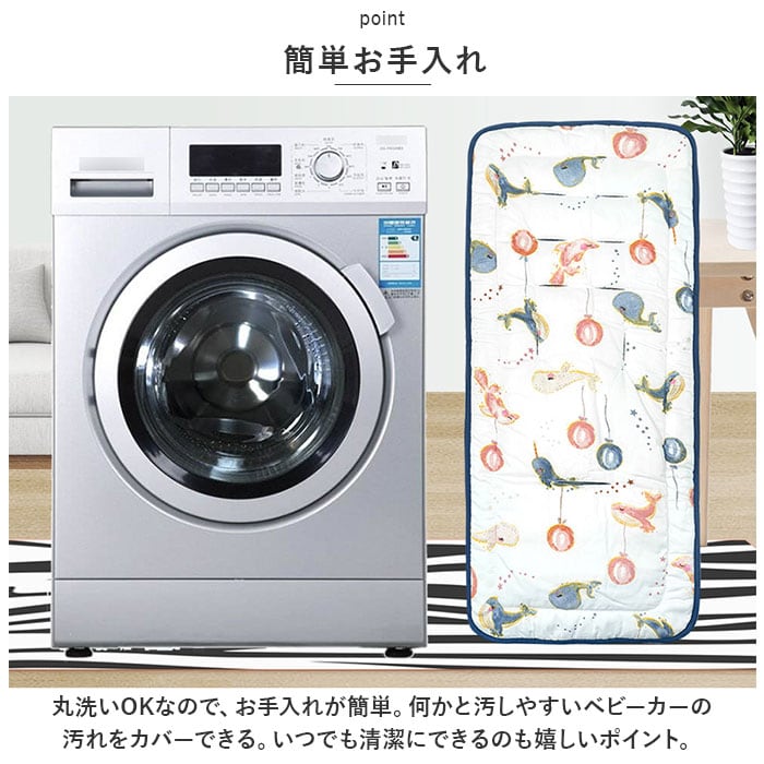 ・丸洗いOKなので、お手入れが簡単。何かと汚しやすいベビーカーの汚れをカバーできる。いつでも清潔にできるのも嬉しいポイント。