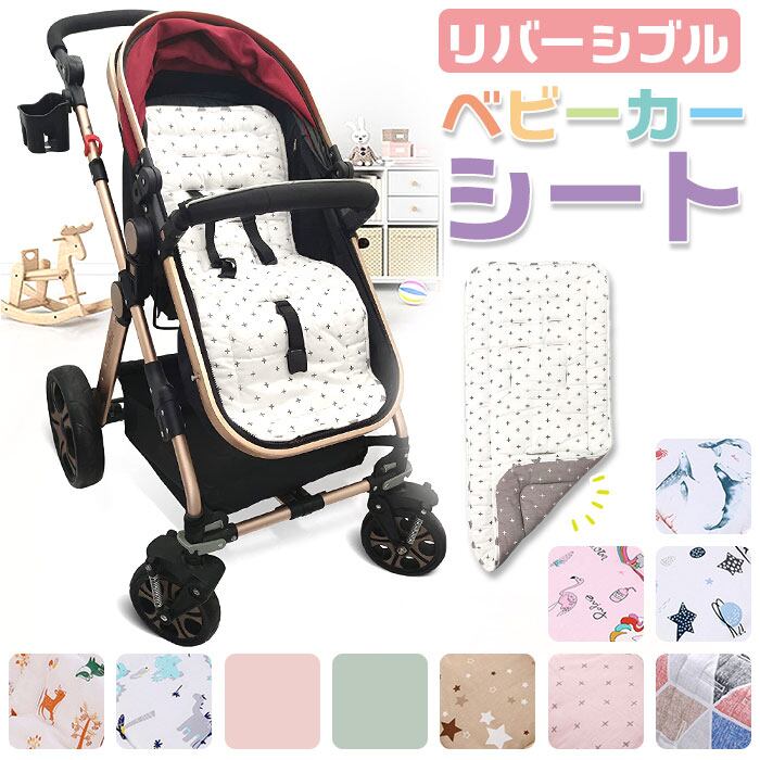 ベビーカー シート 通販 クッション ベビーカーマット シートカバー リバーシブル 吸汗 通気性 速乾性 綿 洗える オールシーズン 汚れ防止 外出 お出かけ ズレにくい かわいい 快適 柔らかい 赤ちゃん 新生児 ベビー用品
