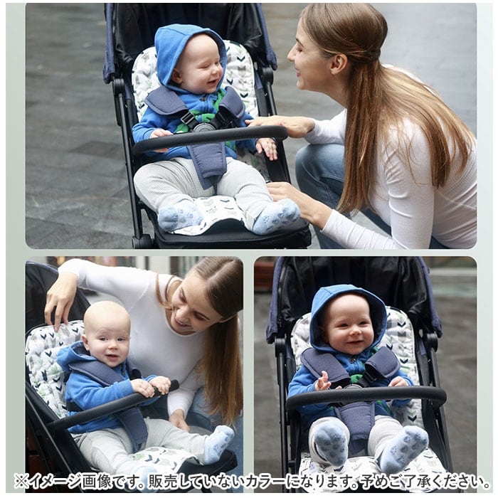 ・シートの穴部分にベビーカーのベルトを通すだけの簡単装着でズレにくい!肩ベルトは3段階にサイズ調節可能なので、成長に合わせて長く使える優れモノ!