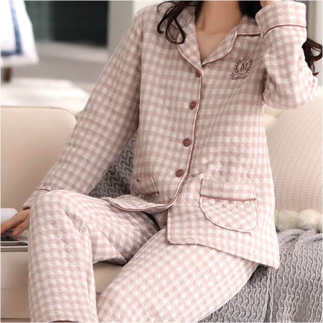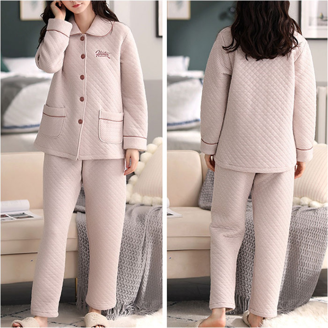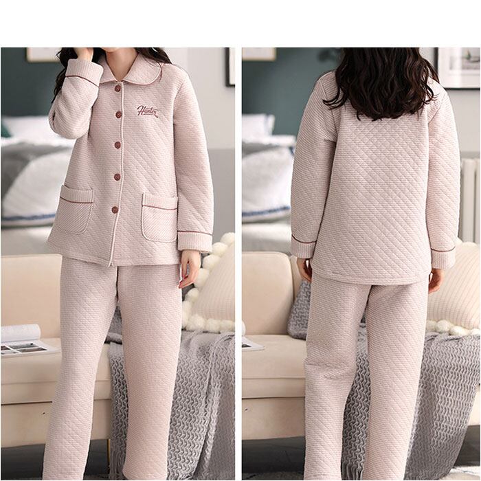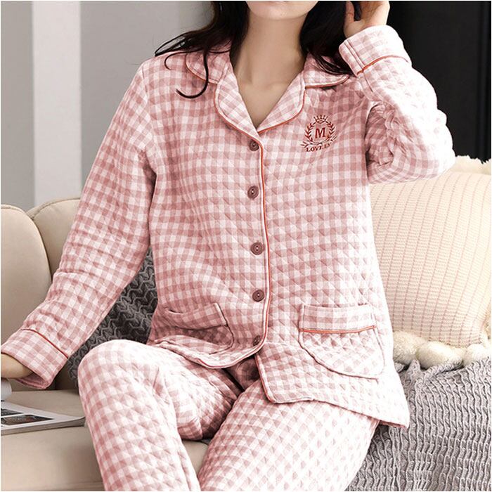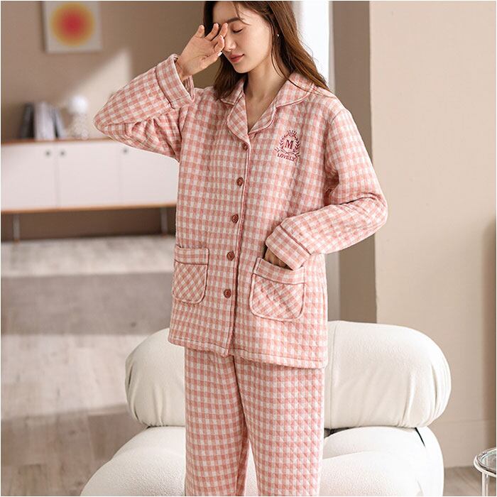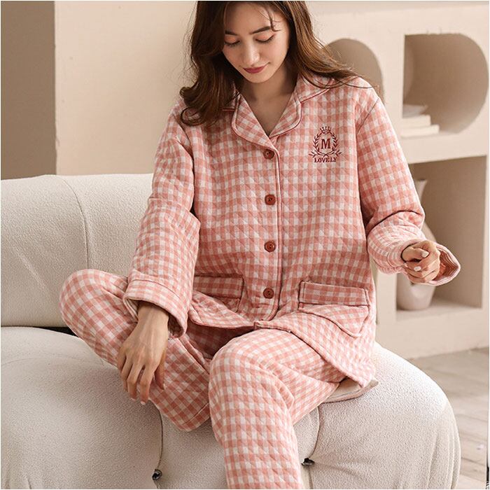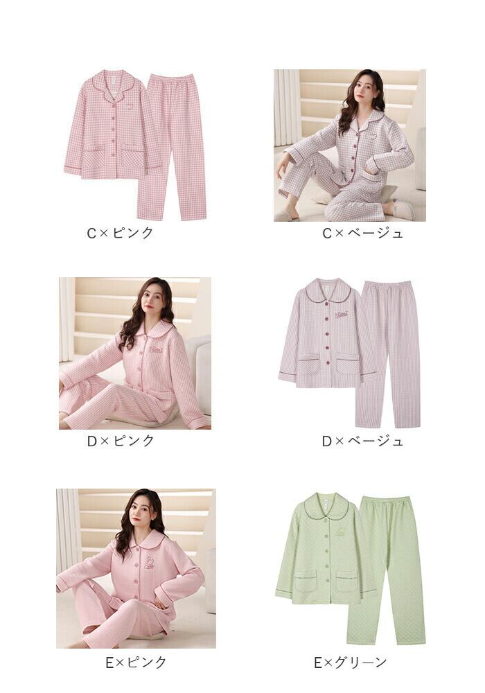 キルトニットパジャマ 上下セット コットン 秋冬 yspaj5310