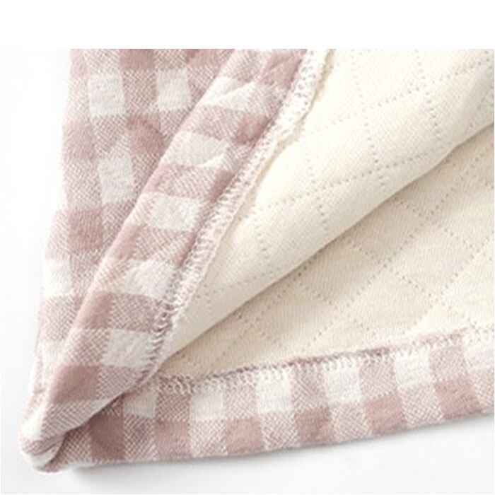 ・柔らかくチクチク感のない、コットン混紡のキルト生地。ムレにくく、ふんわり感やあたたかさをアップさせる3層構造!