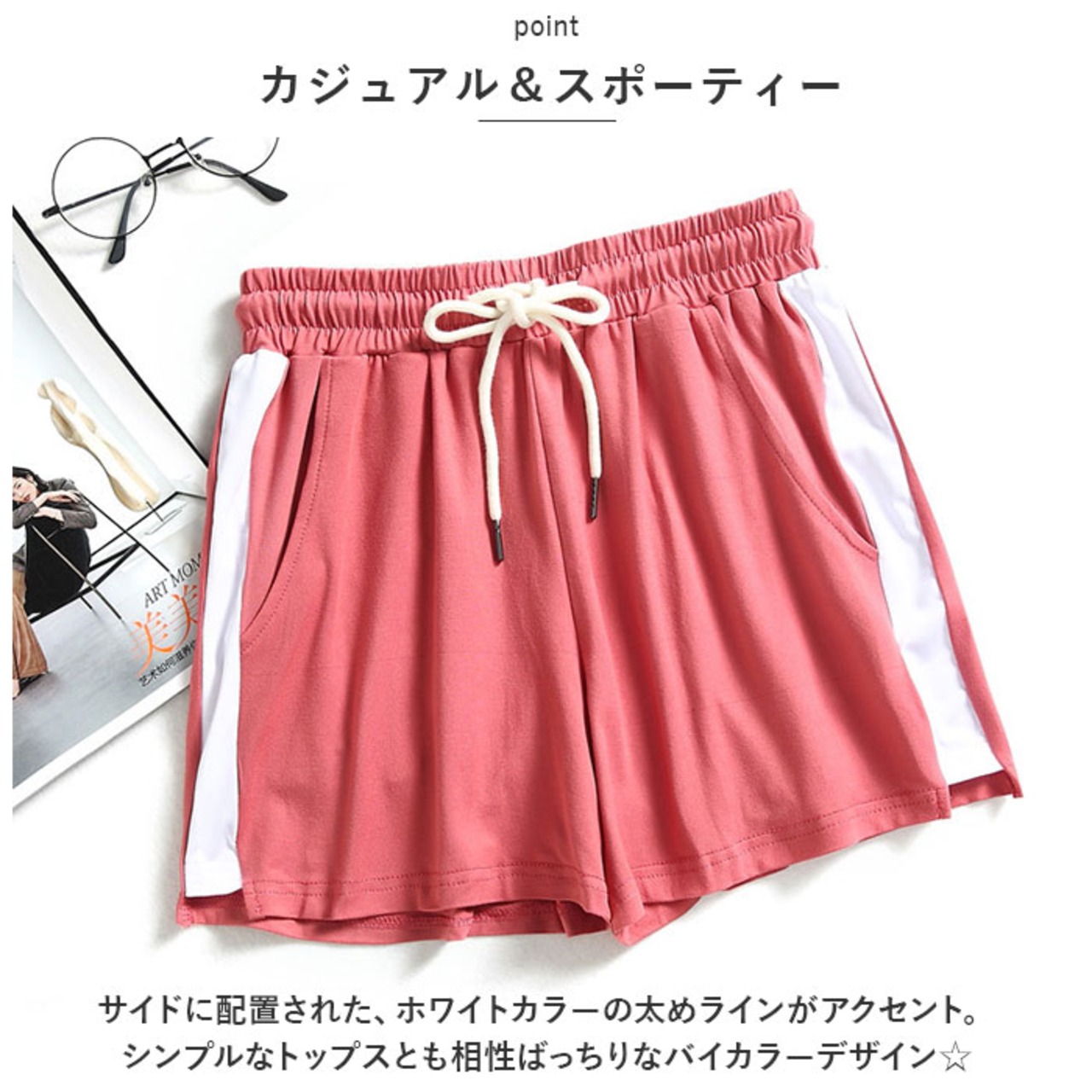 ・サイドに配置された、ホワイトカラーの太めラインがアクセント。シンプルなトップスとも相性ばっちりなバイカラーデザイン☆