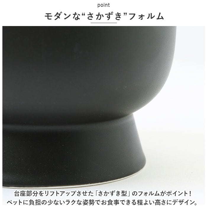 ・台座部分をリフトアップさせた「さかずき型」のフォルムがポイント!ペットに負担の少ないラクな姿勢でお食事できる程よい高さにデザイン。