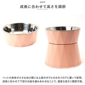 ・ペットの身体が小さな幼少期には上部のボウルのみをフロアに置いて使用。成長に合わせて下部の台座を組みあわせることで、適度な高さに調節可能。