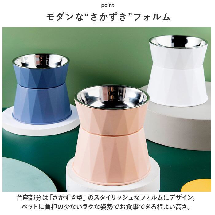 ・台座部分は「さかずき型」のスタイリッシュなフォルムにデザイン。ペットに負担の少ないラクな姿勢でお食事できる程よい高さ。
