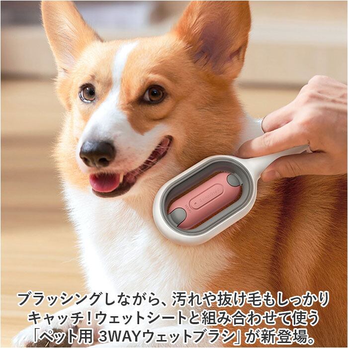 ・ブラッシングしながら、汚れや抜け毛もしっかりキャッチ!ウェットシートと組み合わせて使う「ペット用 3WAYウェットブラシ」が新登場。