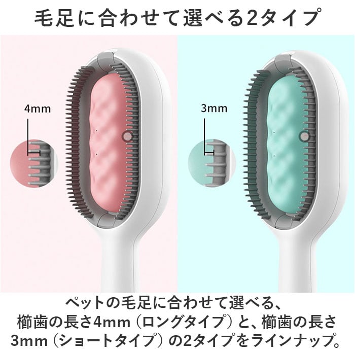 ・ペットの毛足に合わせて選べる、櫛歯の長さ4mm(ロングタイプ)と、櫛歯の長さ3mm(ショートタイプ)の2タイプをラインナップ。