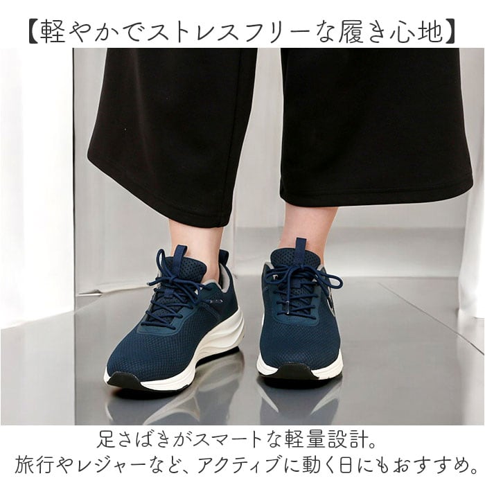 【軽やかでストレスフリーな履き心地】足さばきがスマートな軽量設計。旅行やレジャーなど、アクティブに動く日にもおすすめ。