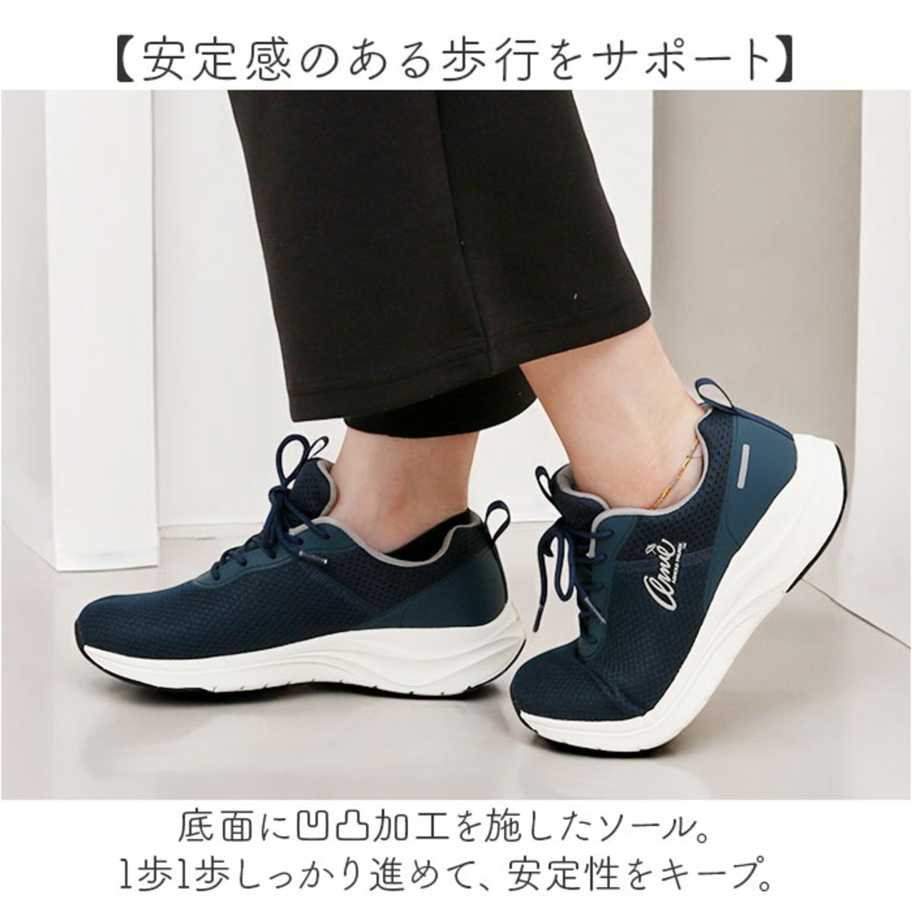 【安定感のある歩行をサポート】底面に凹凸加工を施したソール。1歩1歩しっかり進めて、安定性をキープ。
