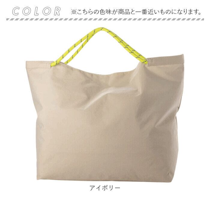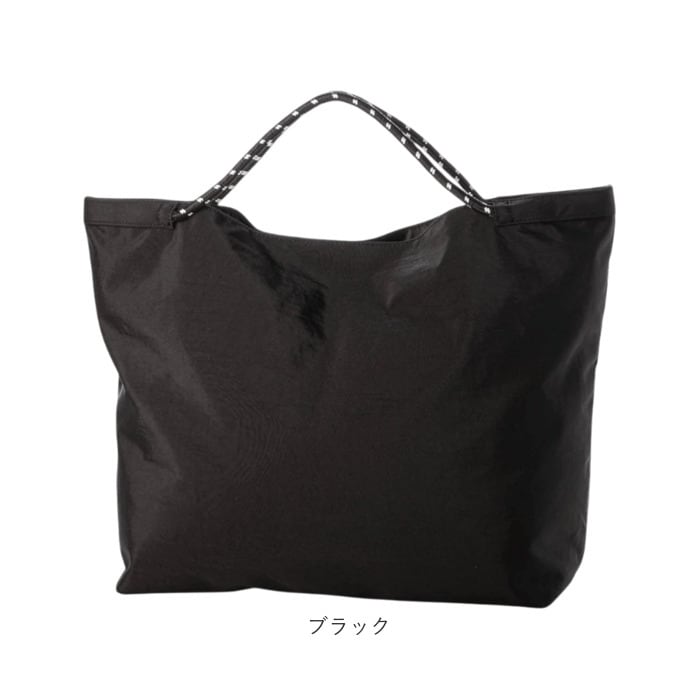 ・ハリのあるナイロン素材を使った、ベーシックなトート。ハンドルはカジュアルなドローコード。