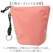 ・バッグ使用時は、小物をまとめて収納してもOK。リング金具でハンドルに取り付け。