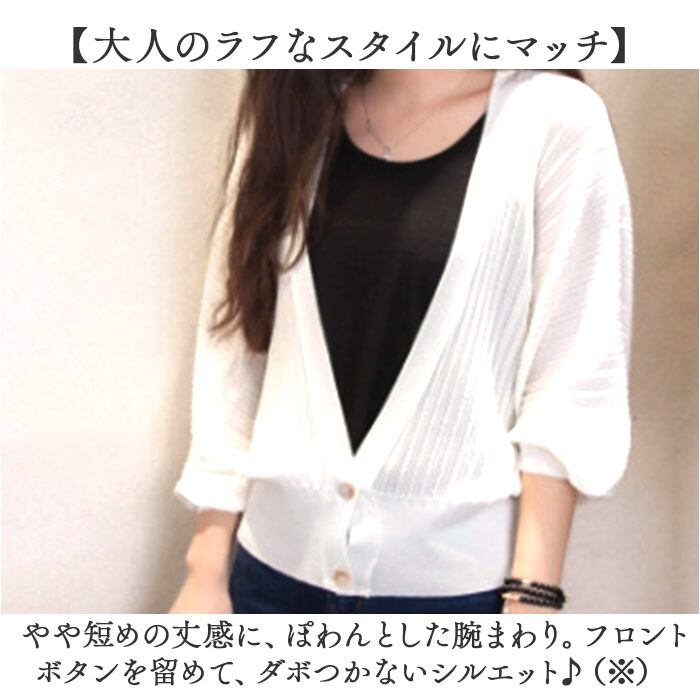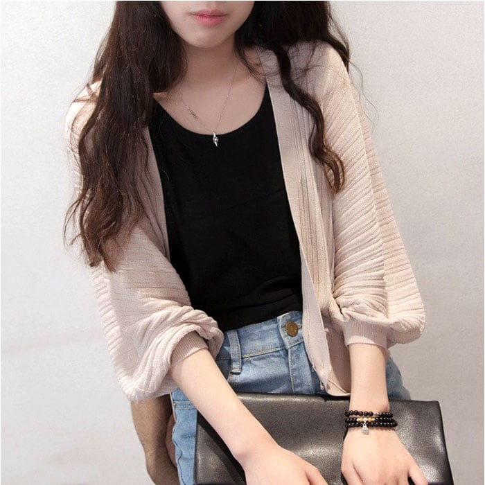 ショートカーディガン リブ ボリューム袖