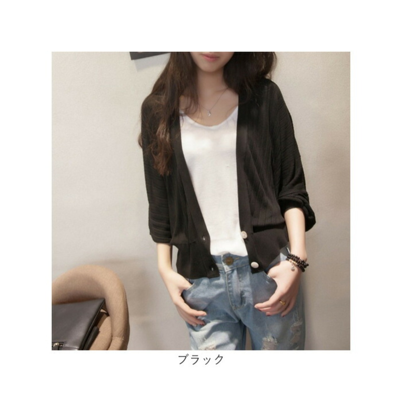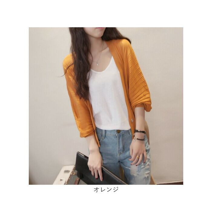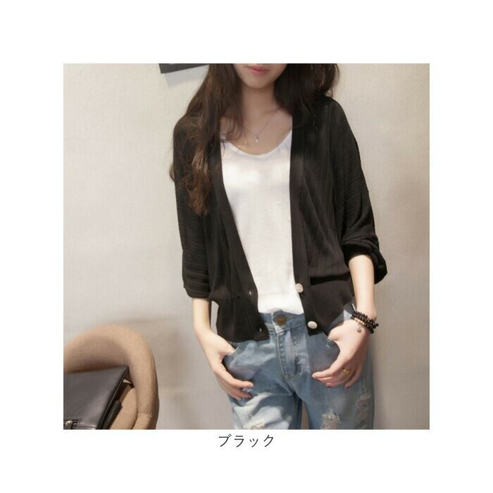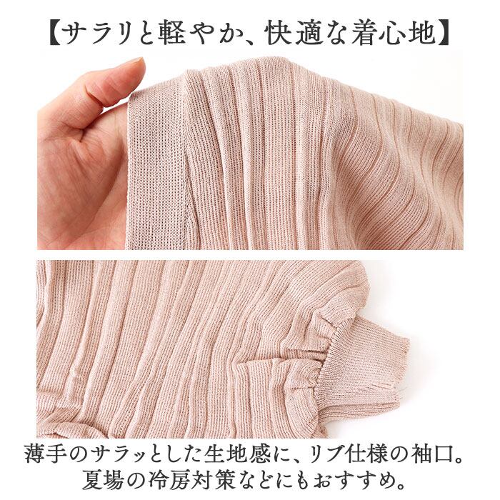 ・薄手のサラッとした生地感に、リブ仕様の袖口。夏場の冷房対策などにもおすすめ。