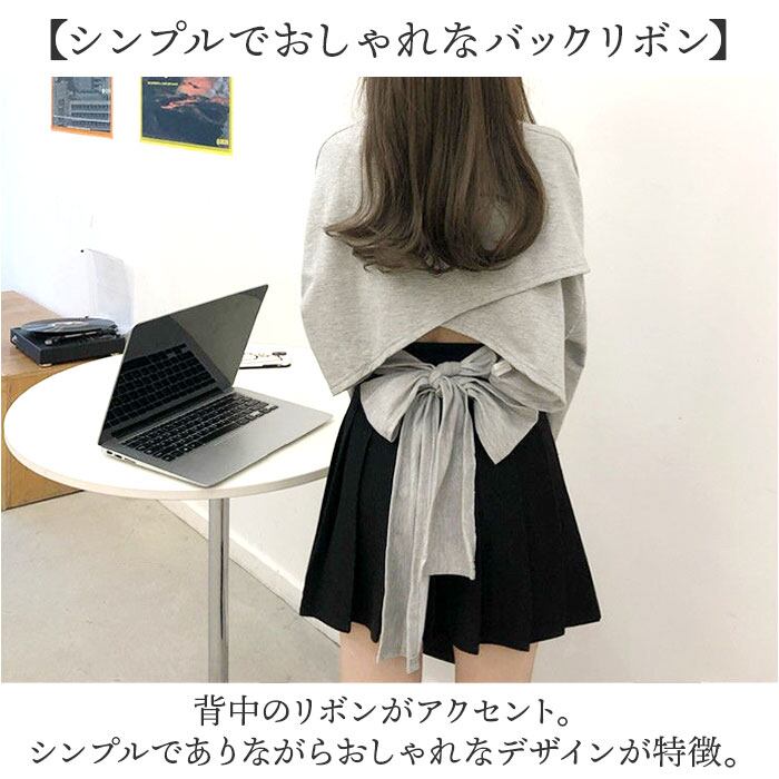 バックリボントップス 長袖