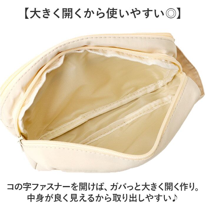 ・コの字ファスナーを開けば、ガバっと大きく開く作り。中身が良く見えるから取り出しやすい♪