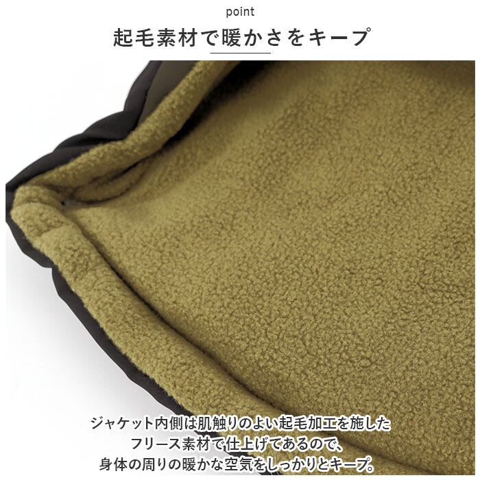 ・ジャケット内側は肌触りのよい起毛加工を施したフリース素材で仕上げてあるので、身体の周りの暖かな空気をしっかりとキープ。