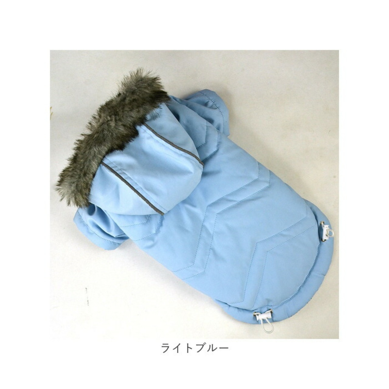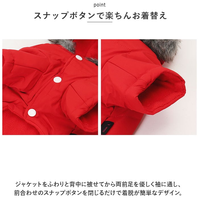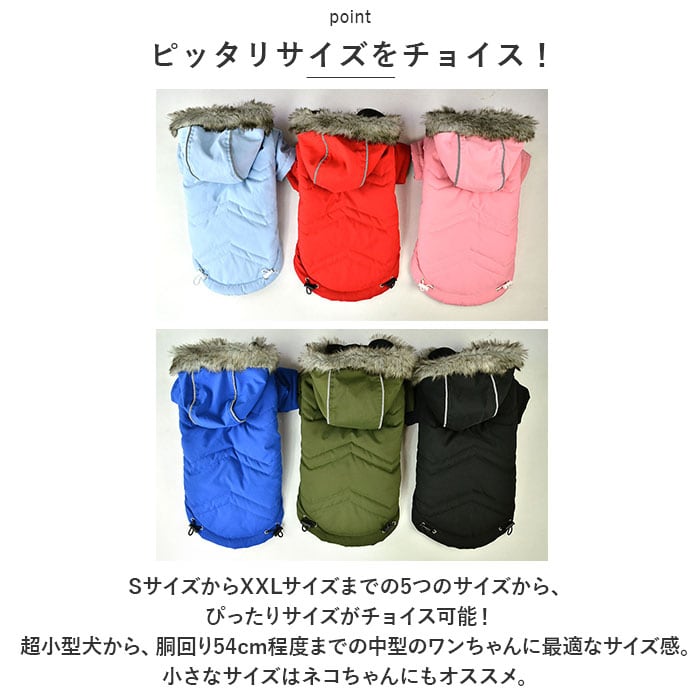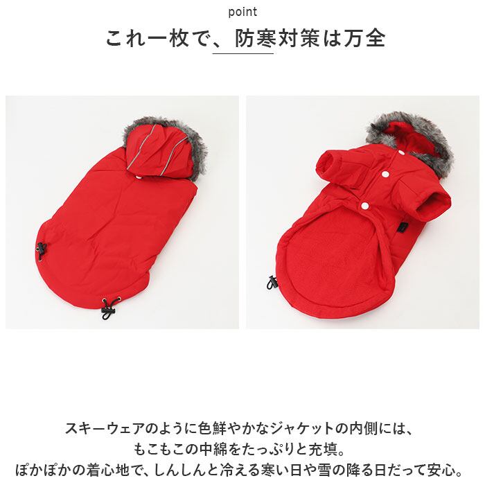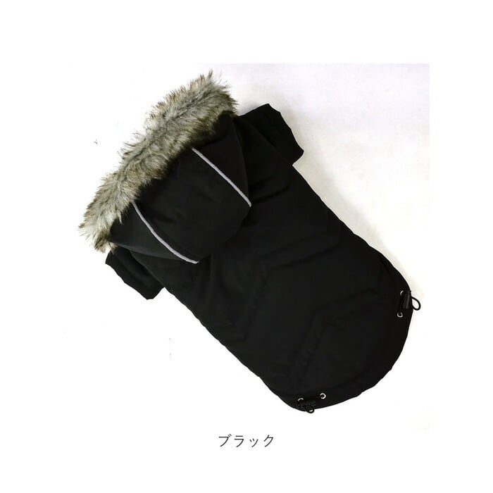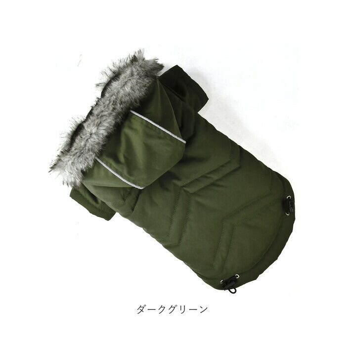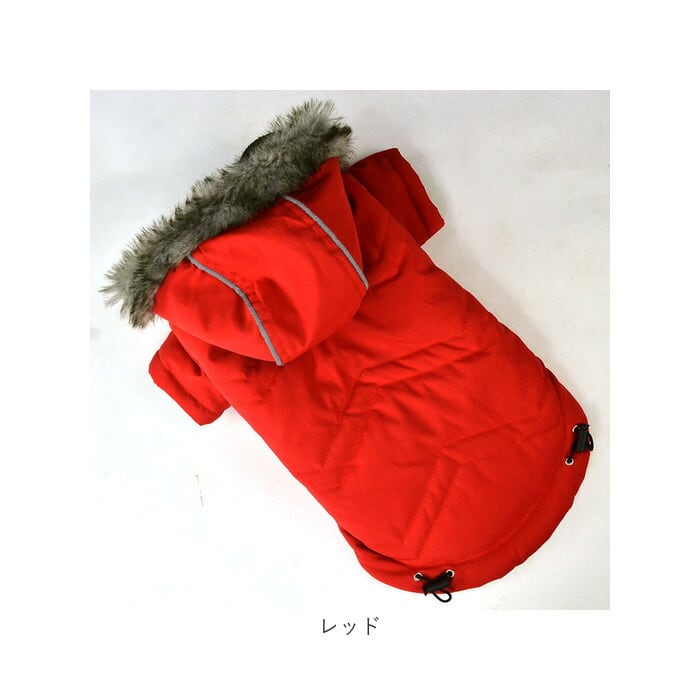 ・リッチなファー付きフードがお洒落なデザイン!寒い日だって元気にお散歩したいワンちゃんにオススメ「ペット用防寒ジャケット(フード付き)」が新登場。